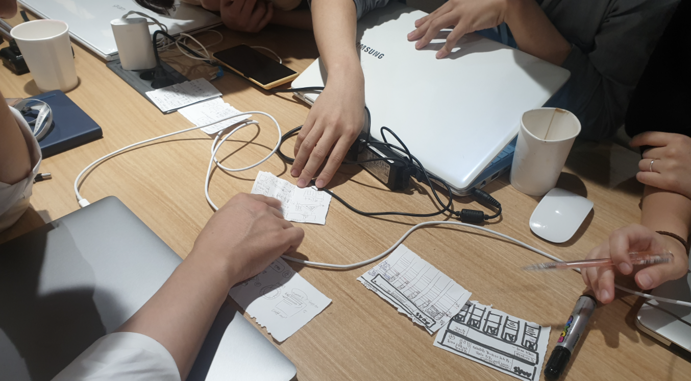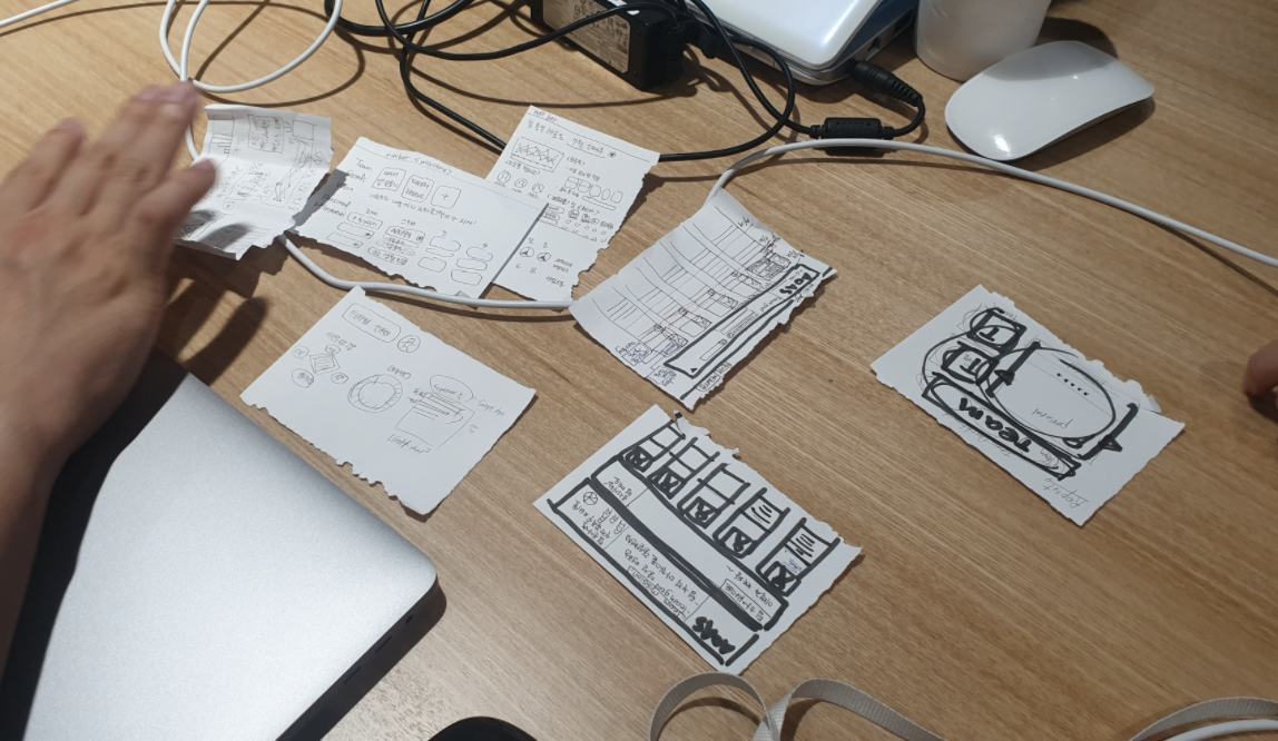 ์์ผ๋ก๋ ์ฒ์ ๊ทธ๋ ค๋ณด์๋๋ฐ, ์ด๋ฅผ ํ ๋๋ก ์ ๋ ์ปดํจํฐ๋ก ๊ฐ๋ณ๊ฒ ์์ฑํด๋์๋ ์์ด์ดํ๋ ์์ ๋ฒ์ ์ ํ๋ ๋ฐฉํฅ์ผ๋ก ๋ณด์ํ๋ค. ์๊ฐ๋ณด๋ค ์์ผ๋ก ๊ทธ๋ฆฌ๋ ์์ด์ดํ๋ ์์ด ๊ต์ฅํ ๋น ๋ฅด๊ณ ์ฝ๊ฒ ์ปค๋ฎค๋์ผ์ด์ ํ๊ณ ์์ด๋์์ด์ ํ ์ ์๋ ๋ฐฉ๋ฒ์ด๋ผ๋ ๊ฒ์ ๊ฒฝํํ๋ค! ๋๊ฐ์ ์ค๋ช ์ด๋๋ผ๋, ํฌ๋ฐํ ๊ทธ๋ฆผ์ด ์๋ ๊ฒ๊ณผ ์๋ ๊ฒ์ ์ดํด๋์ ์๊ฐ๋ณด๋ค ํฐ ์ฐจ์ด๋ฅผ ๊ฐ์ ธ์จ๋ค๋ ๊ฒ์ ๊นจ๋ฌ์๋ค. ์ฐ๋ฆฌ๋ ์ด ๋ ผ์์์, ํ ๋ช ํ ๋ช ์ด ๊ทธ๋ฆฐ ์์ด์ดํ๋ ์ ๋ค์ํ ์์ด๋์ด์ ์์๋ฅผ ๋ชจ์ ์ปดํจํฐ๋ก ํตํ๊ฒ ์ฎ๊ฒจ๋ณด์๋ค. ๋ทฐ๋ ํฌ๊ฒ ์ธ ํ์ด์ง์ด๋ฉฐ, ๋ค์๊ณผ ๊ฐ๋ค.