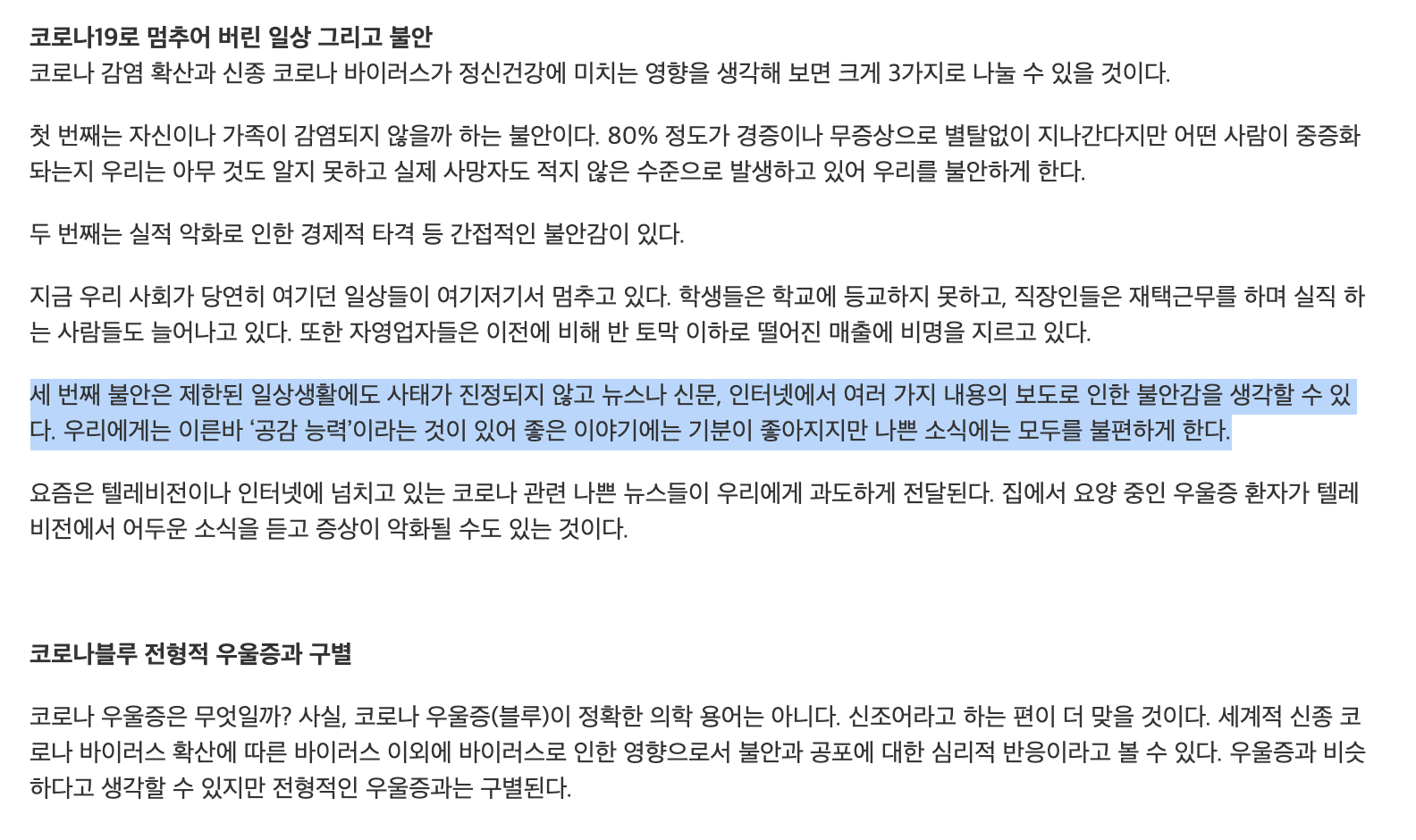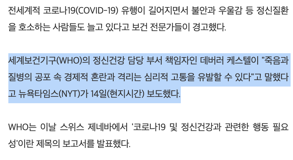 πCOVID-19 μ μΌλ³μ μν₯μ λ°λ μ¬λλ€μ μν μ¬λ¦¬μ κ°μ