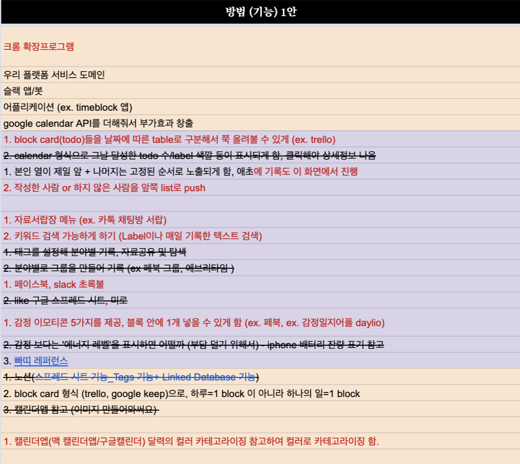 ์ฐ๋ฆฌ๋ ๊ฐ์์ ๋ฆฌ์์น๋ฅผ ๋ฐํ์ผ๋ก ๊ตฌ์ฒด์ ์ธ ๊ธฐ๋ฅ์ ํ์ ํ๊ธฐ๋ก ๋ชฉํํ๋ค. ๊ทธ๋ฌ๋ ํ์ค์, ์ด์๊ณผ ๊ฝค ๋ฉ๋ฆฌ ๋จ์ด์ ธ ์์๋ค. ์ผ์ฐจ์ ์ผ๋ก, ์ฐ๋ฆฌ๋ ๊ตฌ๊ธ ์คํ๋ ๋์ํธ์ ์ ๋ฆฌํ๋ ๋จ๊ณ๋ณ Task์ Needs๋ฅผ ํ์ธํ๊ณ , ๊ธฐ์กด ๋ฐฉ์ ์ ๊ทธ๋ ์ด๋๋ฅผ ์ํ ๋ฆฌ์์น ๋ด์ฉ์ ๊ณต์ ํ๋ค. ๋ค์ํ ๋ฐฉ์๊ณผ ๋ ํผ๋ฐ์ค๋ค์ด ๋ฑ์ฅํ๋ค.