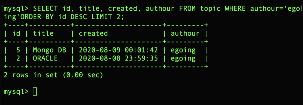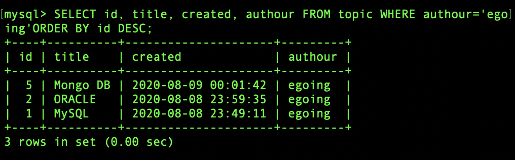 ์ด๋ ๊ฒ ๋ชจ๋ ํ๊ฐ ์๋๋ผ, ํ ์ค์์๋ id, title, created, authour์ ๋ํ ๊ฐ๋ง ๋ณด๊ณ ์ถ์๋๋ '