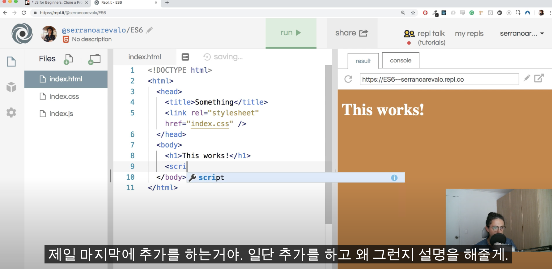 ๊ทธ๋ฆฌ๊ณ ์ด์ ๋ณธ๊ฒฉ์ ์ผ๋ก ๋๊ผด๋ผ์ค๊ฐ JS ์์ ์ ์ง์ ํ๋ค! ๊ทธ๋ฆฌ๊ณ ๋๋ ์ถฉ๊ฒฉ์ ์ธ ์ฅ๋ฉด์ ๋ง์ฃผํ๋๋ฐ..