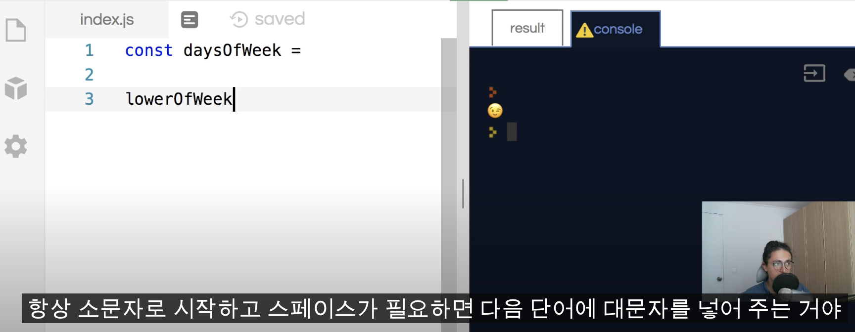 ๊ฐ๋จํ ์๋ฐ์คํฌ๋ฆฝํธ ๋ฌธ๋ฒ ๊ท์น! camelcase๋ก ์ ์ด์ค๋ค.