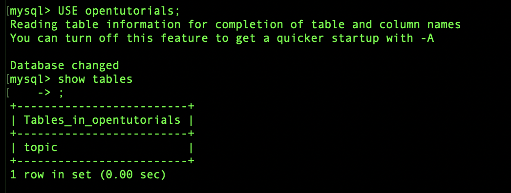4. ์คํค๋ง ์ ์ํ๊ธฐ & ์คํค๋ง ๋ด์ ํ ํ์ธํ๊ธฐ: USE _____; / show tables