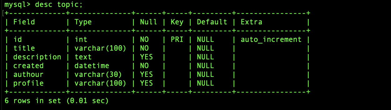5. ์คํค๋ง ๋ด์ ํ ๋ณด๊ธฐ: desc ____;