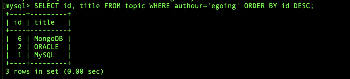 8-3. ์ค๋ฆ์ฐจ์์ผ๋ก ์ ํ๋ ํ ์ ๋ ฌํด์ ๋ณด๊ธฐ SELECT & WHERE & ORDER BY __ DESC;