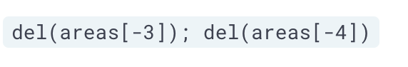 ๋ฐ๋ผ์, del(areas[-4:-2]) ์ด๋ ๊ฒ ๋ฌถ์ด์ ์ญ์ ๋ฅผ ํด์ค์ผ ํผ์ ์ ํผํ ์ ์๋ค.