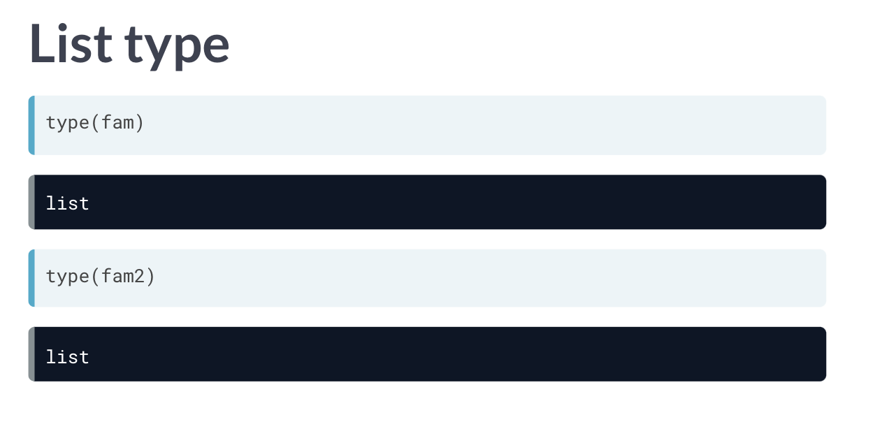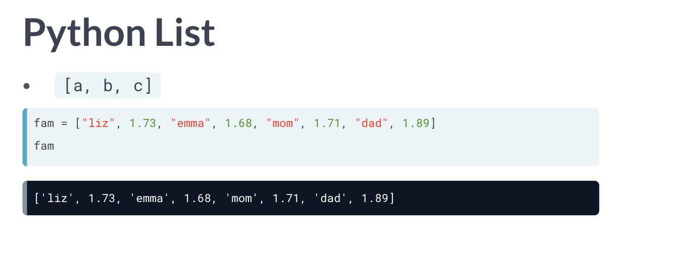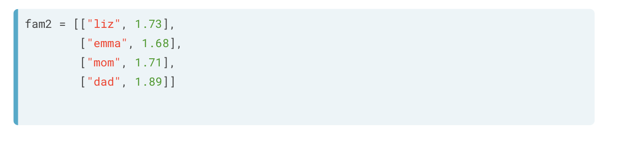 ์ด ๋ฆฌ์คํธ๋ ์ญ์, str/bool/int/float์ ๊ฐ์ด, ๋๋ค๋ฅธ ์ข ๋ฅ์ ๋ฐ์ดํฐ ํ์ ์ด๋ผ๊ณ ํ ์ ์๋ค.