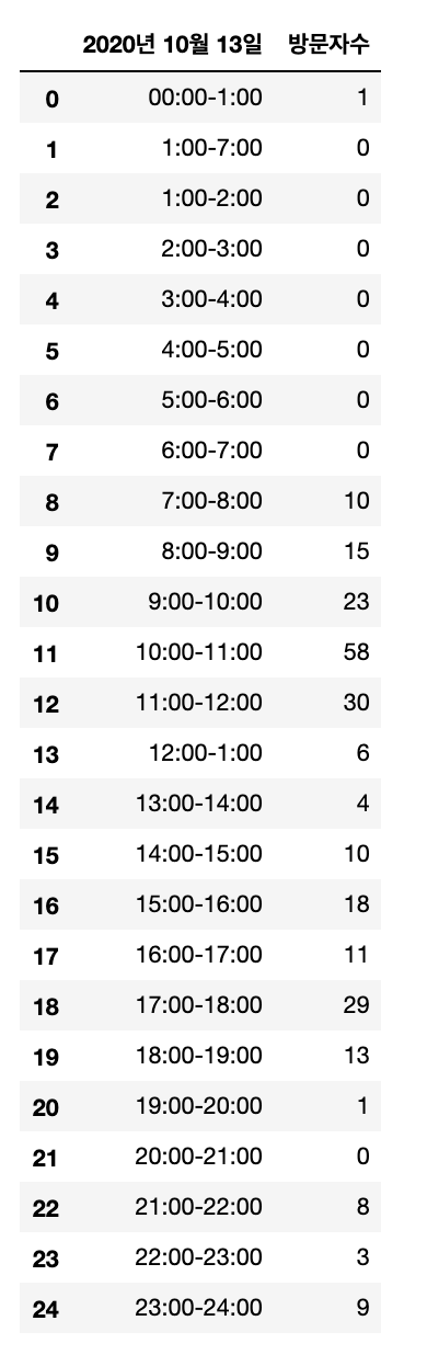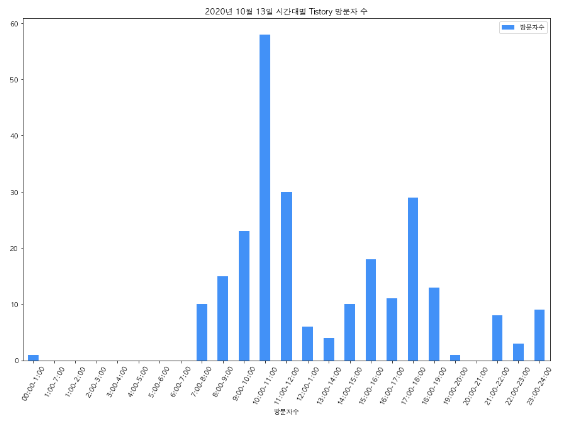 ์๊ฐ๋๋ณ ์ ์ ์ ์ถ์ด๋ฅผ ์๊ฐํํ๊ณ ์ถ์ด์, tistory์ ์ ์ ๋ก๊ทธ ์๊ฐ๋๋ณ ์ ์ ๊ธฐ๋ก์ ์นด์ดํธํด์ ์คํ๋ ๋์ํธ์ ํ๋์ฉ ์ฎ๊ฒจ์ ์๋ค. ๊ทธ๋ฆฌ๊ณ ์ฃผํผํฐ๋ ธํธ๋ถ์ ๋ก๋ํด์ ๊ฐ๋จํ๊ฒ barplot์ ๋ง๋ค์ด ๋ณด์๋ค.