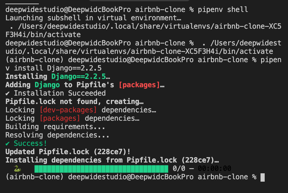터미널에 pipenv를 입력해, 제대로 설치가 잘 되었는지 확인해본다.