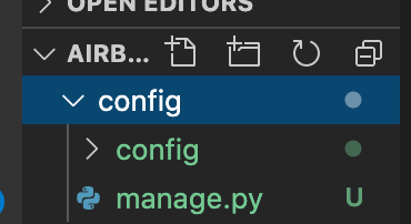 ๊ทธ๋ฆฌ๊ณ ๊ทธ ์์ ๋ค์ด์๋ configํด๋์ manage.py๋ฅผ ๋ฐ์ผ๋ก ๊บผ๋ธ๋ค. ๊ทธ๋ฆฌ๊ณ ๋์ Aconfig ํด๋๋ ์ง์ด๋ค.
