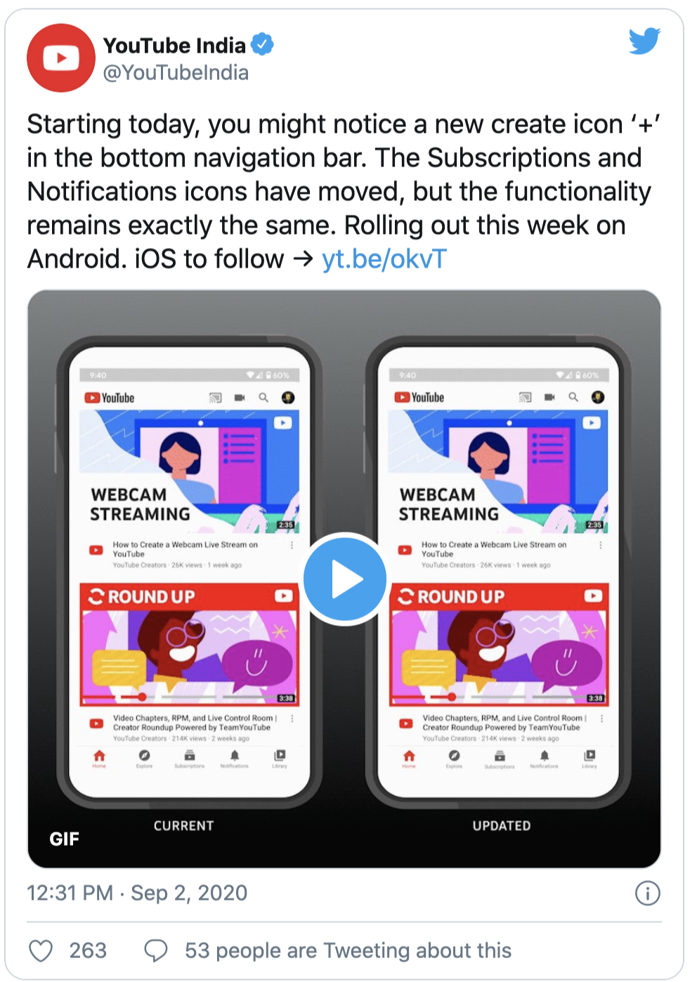 ์ ํ๋ธ์์ ์ ๊ณตํ ์ ํ๋ธ์ผ์ธ ๋ฒ ํ๋ฒ์ ์ ๋ณด๋ฉด, ์์ผ๋ก ๊ตญ๋ด์์๋ ์ด๋ป๊ฒ ์์ฐ์ค๋ฝ๊ฒ '์ ํ๋ธ ์ผ์ธ ' ๊ธฐ๋ฅ์ด ์ ์ ๋ ๊ฒ์ธ์ง ์์ํด๋ณผ ์ ์๋ค. ํ์ฌ ์ธ๋ ์ฌ์ฉ์์ ํํด ์ถ์๋ ์ ํ๋ธ ์ผ์ธ ๋ฒ ํ๋ฒ์ ์, ํ๋จ ๋ค๋น๋ฐ์ '+' ์์ด์ฝ์ ๋๋ ์ ๋, 'Create a Short'๋ผ๋ ๋ฌธ๊ตฌ๋ก ์์นํด ์๋ค. ์ด๋ฌํ ์ ํ๋ธ ์ผ์ธ ์ ์์ฅ ์ง์ ์ ์ํด, '+' ๋ฒํผ์ด ์ ํ๋ธ ํ๋จ ๋ค๋น๊ฒ์ด์ ๋ฐ ์ค์์ ์ค๋๋ก ํ๋ UXUI ์ ๋ฐ์ดํธ๊ฐ ์ด๋ฃจ์ด์ก๋ค๊ณ ํ์ ๋๋ค.