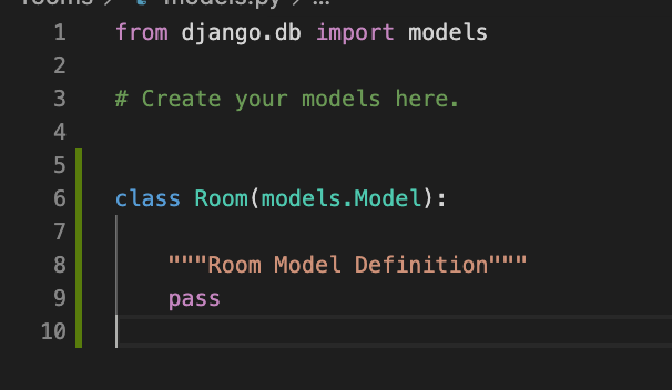 2. ๋์งธ, models.py์์ ํด๋น App์ ๋ชจ๋ธ์ ์์ฑํด์ค๋ค.