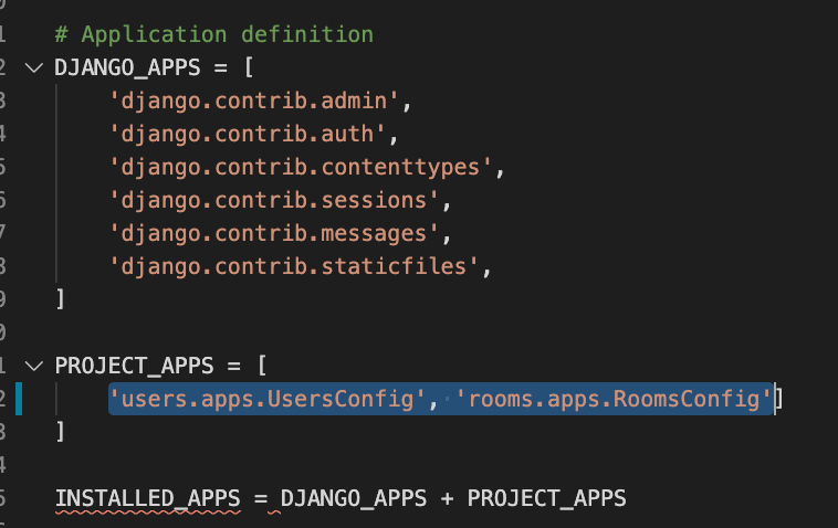 ex. users ํด๋์ apps.py์ UsersConfig ํด๋์ค, rooms ํด๋์ apps.py์ UsersConfig ํด๋์ค