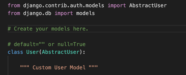 โ ์ปค์คํ ํด์ฃผ๊ณ ์ถ๋ค๋ฉด, AbstractUser์ ์ํฌํธํด์จ๋ค.