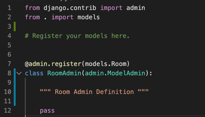 3. ์ ์งธ, admin.py์์ Model์ importํ๊ณ , ํด๋นApp์ด๋๋ฏผ ํด๋์ค๋ฅผ ์์ฑํด ์ด๋๋ฏผ ํ๊ฒฝ์ ์ธํ ํด์ค๋ค.