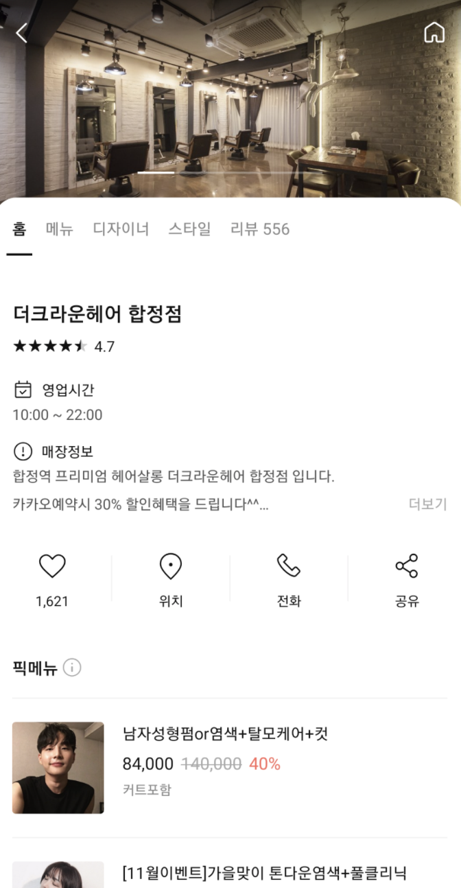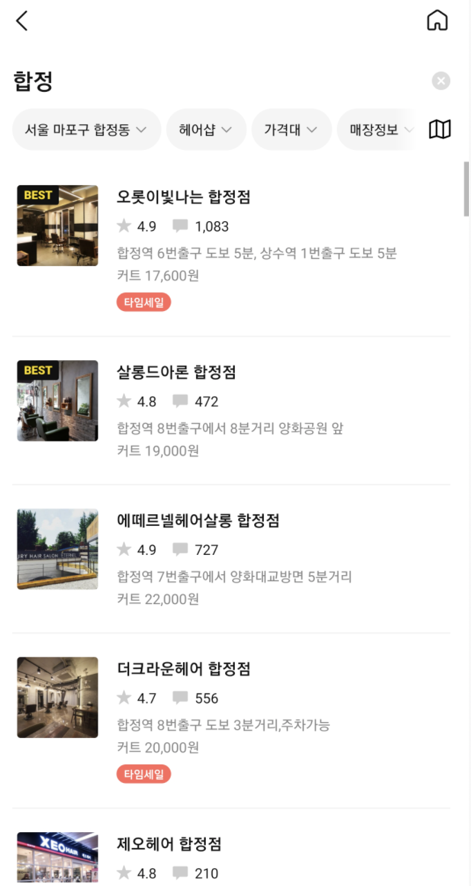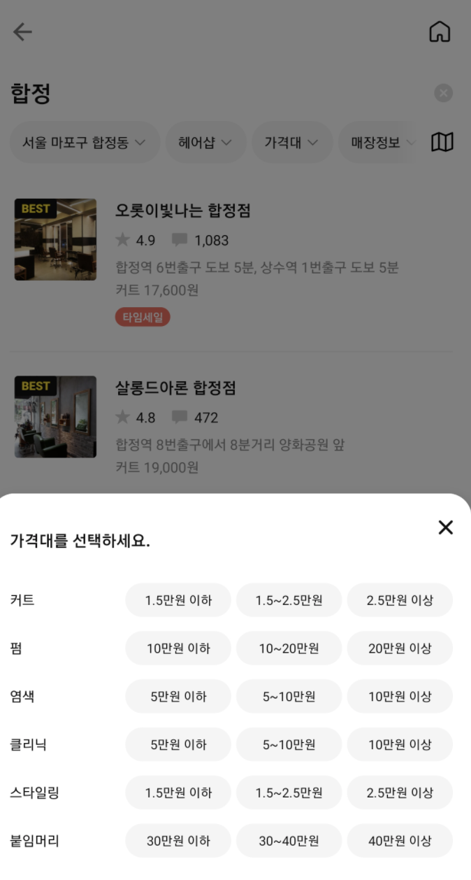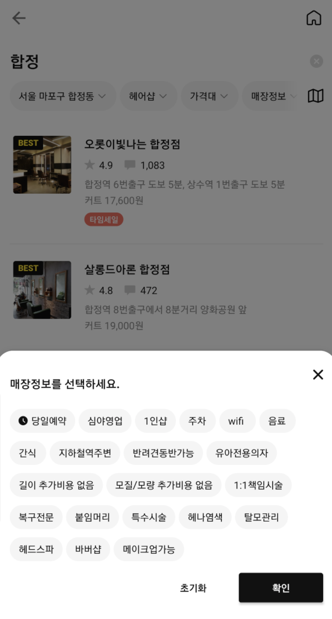 ์ธ๋ฐํ ๊ฒ์ ํํฐ ๊ธฐ๋ฅ์ด ์ธ์์ ์ด์๋ค. ์คํ์ผ๋ง ๋ถ์ผ ๋ณ ๊ฐ๊ฒฉ๋๋ก ํํฐ๋ฅผ ํ ์ ์๊ณ , ๋ ๋งค์ฅ ์ ๋ณด ์ค์๋ '์ฌ์ผ์์ , 1์ธ์ต, ์ฃผ์ฐจ, wifi, ์๋ฃ, ๊ฐ์, ๋ฐ๋ ค๊ฒฌ๋๋ฐ๊ฐ๋ฅ, ์ ์์ ์ฉ์์' ๋ฑ๋ฑ ๊ต์ฅํ ๋ํ ์ผํ๊ฒ ํํฐ๋ง์ด ๊ฐ๋ฅํ๋ค๋ ๊ฒ์ด ๊ต์ฅํ ์ ์ฉํ๊ฒ ๋๊ปด์ก๋ค. ์ผ์ผ์ด ์ฐพ์๋ณด๊ฑฐ๋, ์ง์ ๊ฐ๊ธฐ ์ ๊น์ง๋ ํ์ธํ๊ธฐ ์ด๋ ค์ ๋ ์ ๋ณด๋ค์ ๊ธฐ๋ฐํด ํ๋ฒ์ ํํฐ๋งํ ์ ์๊ฒ ๋ ๊ฒ์ด๋ค.