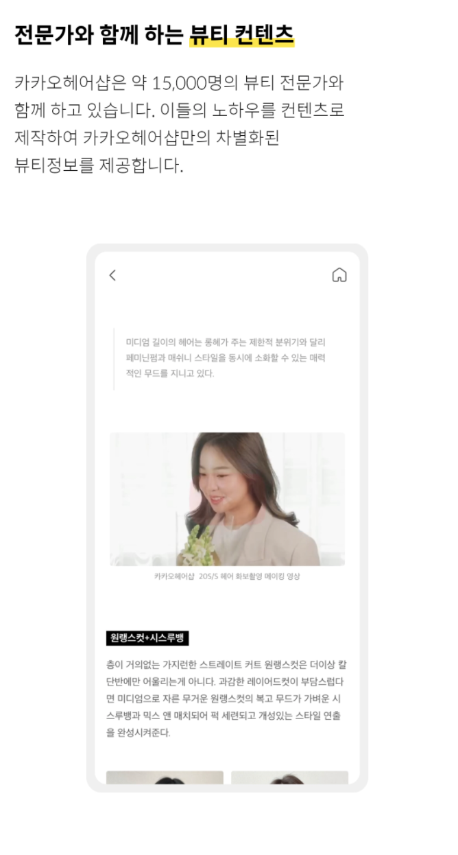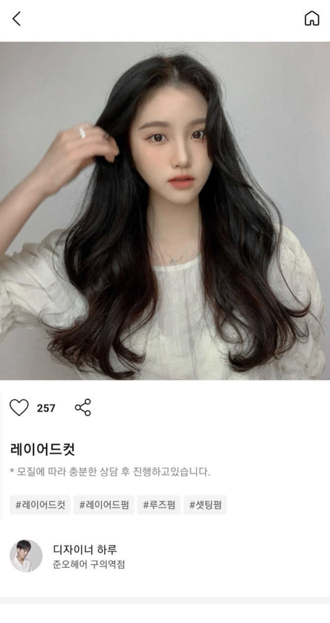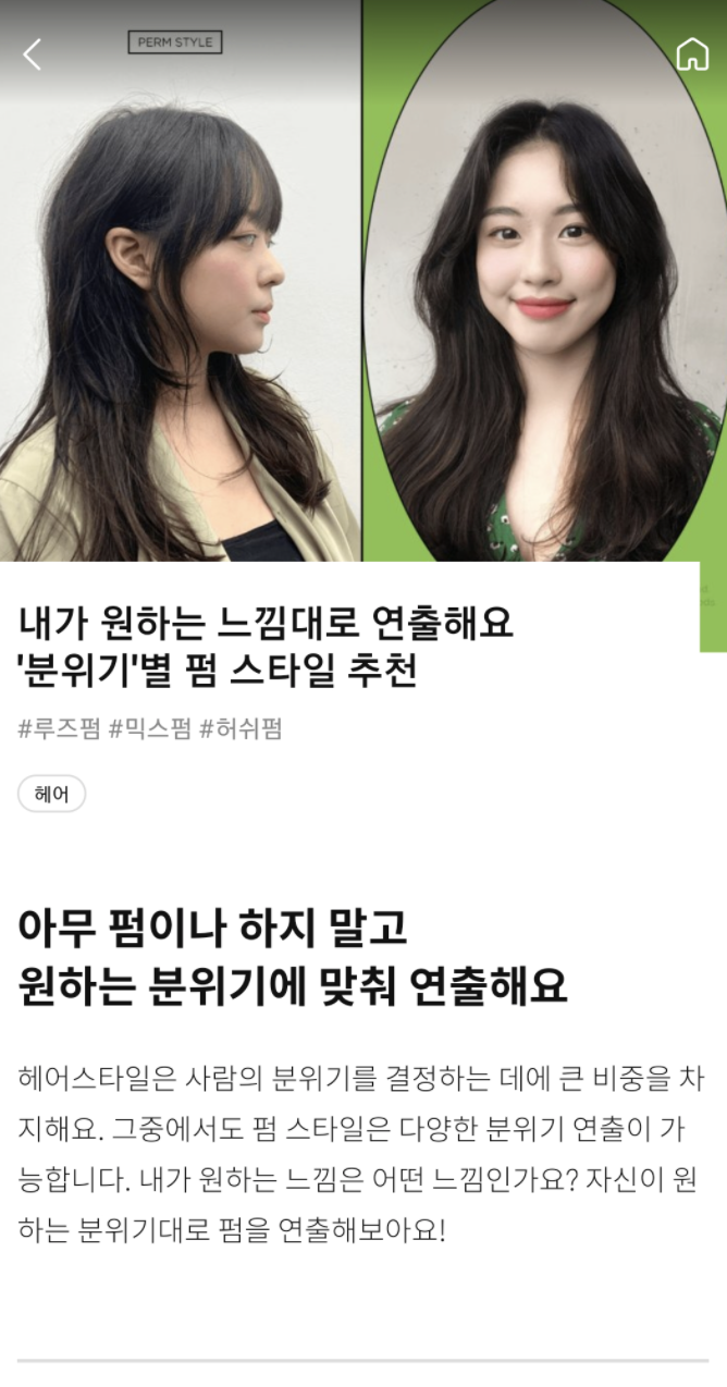 ์คํ์ผ๋ถ ์ฝํ ์ธ ๋ด๋ถ์ ์ด๋ฏธ์ง๋ฅผ ํด๋ฆญํ๋ฉด ์์ ๊ฐ์ด, ํด๋น ์คํ์ผ๋ง๊ณผ ํค์ด๋์์ด๋์ ๊ดํ ์ ๋ณด๋ก ๋์ด๊ฐ๋ค. ํด๋น ์คํ์ผ๋ง์ ์งํํ ํค์ด๋์์ด๋์ ํ๋กํ๋ก ๋ฐ๋ก ๋์ด๊ฐ ์๋ ์๊ณ , ๊ทธ ๋์์ด๋๊ฐ ์ถ์ฒํ ๋๋ค๋ฅธ ์คํ์ผ๋ง๊ณผ ๊ฐ๊ฒฉ์ ๋ณด๋ฅผ ํ์ธํ ์ ์๋ค. ํด์ํ๊ทธ๋ก ๊ฑธ๋ ค์๋ #๋ ์ด์ด๋์ปท #๋ ์ด์ด๋ํ #๋ฃจ์ฆํ #์ ํ ํ ์ด๋ผ๋ ์ ๋ณด๋ฅผ ํตํด, ํด๋น ์คํ์ผ๋ง๊ณผ ๋น์ทํ ๋ ํผ๋ฐ์ค๋ค์ ํด๋ฆญํด์ ๋ฐ๋ก ์ฐพ์๋ณผ ์๋ ์๋ค. ์ด์ฒ๋ผ, ์นด์นด์คํค์ด์ต์ ์คํ์ผ๋ถ ์ฝํ ์ธ ๋ ๊ธฐ์กด์ 'ํค์ด์คํ์ผ ํ์ - ํค์ด๋์์ด๋ ํ์ - ์์ฝํ๊ธฐ - ์์ ๋ฐ๊ธฐ'๋ผ๋ ๋ฒ๊ฑฐ๋ก์ด ๊ณผ์ ์ ๊ฐ๊ฐ ๋์์ฃผ๋ฉด์๋ ํ ๋ฒ์ ํด๊ฒฐํ ์ ์๋๋ก ํด์ค๋ค. ์์ฒด์ ์ผ๋ก ๋ฐํํ๋ ์ ๋ฌธ์ ์ธ 'ํค์ด ์คํ์ผ๋ง' ๋ทฐํฐ ์ฝํ ์ธ ๋ฅผ ๊ธฐ๋ฐ์ผ๋ก ๋ง์์ ๋๋ ์คํ์ผ์ ๋ฐ๊ฒฌํ๊ณ , ๋ฐ๋ก ํด๋น ํค์ด๋์์ด๋์ ์ฐ๊ฒฐ์์ผ ์์ฝํ ์ ์๋๋ก ํ๋ ๊ฒ์ด๋ค.