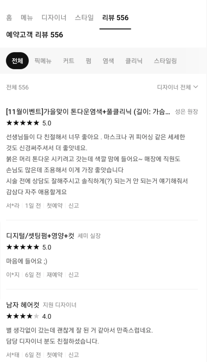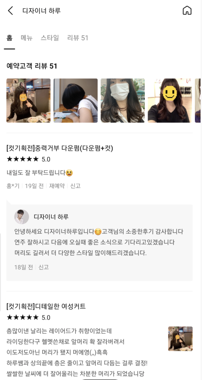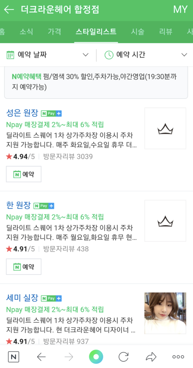 ์กฐ๊ธ๋ง ์๊ณ ๋ฅผ ๋ํ๋ฉด ์ถ๊ฐ ์ ๋ณด๋ฅผ ์ป์ ์๋ ์๋ค. ๋ค์ด๋ฒ ๊ฒ์์ฐฝ์, ์ธ์คํ๋ก ํ์ธํ ๋์์ด๋๊ฐ ์ํ ํค์ด์ต์ ๊ฒ์ํด๋ณด๋ ๊ฒ์ด๋ค. ๋ค์ด๋ฒ์ ๋ฑ๋ก๋ ๋ฏธ์ฉ์ค์ด๋ผ๋ฉด, '์คํ์ผ๋ฆฌ์คํธ' ํญ์์ ์ํ๋ ์คํ์ผ๋ฆฌ์คํธ๋ฅผ ํ์ธํ๊ณ , ์ถ๊ฐ์ ์ธ ์ ๋ณด๋ค์ ํ์ ํ๋ค. ๊ทธ๋ฐ๋ฐ ๊ฐํน ๋ค์ด๋ฒ ์์ฝํ๊ธฐ์ ๊ฐ๊ฒฉ์ ์ฌ๋ ค๋์ง ์๋ ๊ณณ๋ค์ด ์๋ค. ๋ค์๋ฐธ๋ฅ๊ฐ ์๋ ๋ฏธ์ฉ์ค์ผ ๊ฒฝ์ฐ ๊ทธ๋ด ๋๊ฐ ๋ง์ ๊ฒ ๊ฐ๋ค. (๊ทธ๋ด ๋๋ง๋ค ์ง์ฆ..๋ถํธ ๐ ๐)