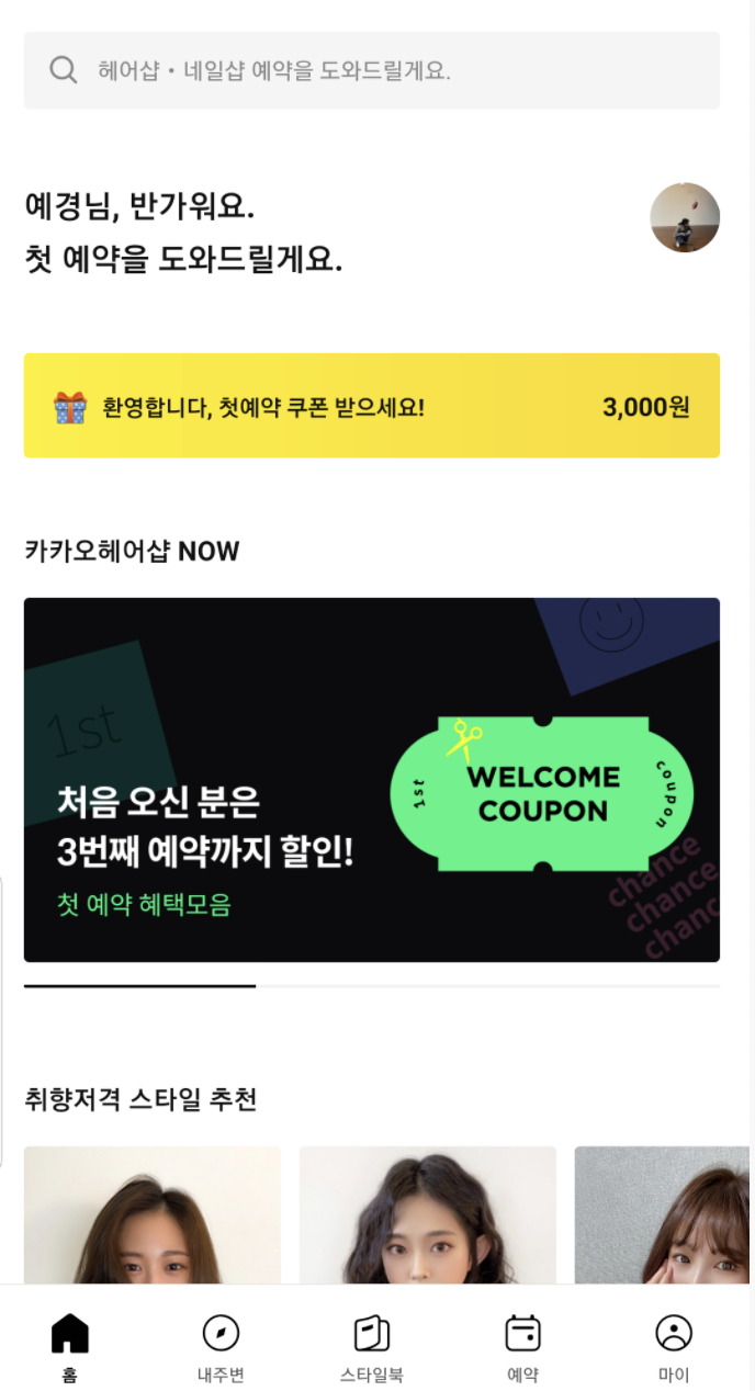 ํค์ด์ต ์ ๋ณด ํญ์์ ์์ฝ์ผ๋ก ๋์ด๊ฐ๋ ค๊ณ ํ ๋, ์ํ๋ ์คํ์ผ๋ง ์ฌ์ง์ ๋จผ์ ๊ณจ๋ผ์ผ ํ๋ค. ์ํ๋ ์คํ์ผ๋ง ์ฌ์ง์ ๊ณจ๋ผ์ผ, ํด๋น ํค์ด ๋์์ด๋์๊ฒ ์์ฝํ๊ธฐ ๊ธฐ๋ฅ์ผ๋ก ๋์ด๊ฐ๋ค. ๋ณดํต์ ๋ฏธ์ฉ์ค์ ๊ฐ์ ํค์ด ๋์์ด๋์๊ฒ ์ฌ์ง์ ๋ณด์ฌ์ฃผ๋ฉฐ '์ด๋ฐ ์คํ์ผ์ด ๋ง์์ ๋ค์ด์ ์์ด์. ์ด๋ ๊ฒ ํด์ฃผ์ธ์~'๋ผ๊ณ ๋งํ๋๋ฐ, ๋๊ฐ ์บก์ณํด ๋จ๋ ์ฌ์ง์ ๋ณด์ฌ์ฃผ๋ ค๊ณ ์ฌ์ง์ฒฉ์ ๋ค์ ์ด๊ฑฐ๋ ์ธ์คํ๊ทธ๋จ '์ ์ฅํ๊ธฐ' ํญ์์ ๋ค์ ๋ค์ ํด์ ๋ณด์ฌ์ฃผ๊ณค ํ๋ค. ์นด์นด์คํค์ด์ต์ ํตํด ์์ฝํ์ ๋, ์ํ๋ ์คํ์ผ๋ง ์ฌ์ง์ ๊ธฐ๋ฐ์ผ๋ก ์์ฝ์ด ์งํ๋๊ธฐ ๋๋ฌธ์ ๊ทธ๋ฐ ์ ์ฐจ๋ฅผ ๊ฑด๋๋ธ ์ ์๊ฒ ๋ ๋ฏ ์ถ๋ค.