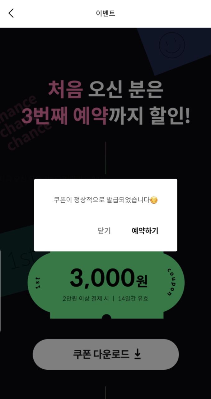 ๋ก๊ทธ์ธ์ ์ํด ๋ก๋ฉ๋๋ ํ๋ฉด์์ '์นด์นด์ค'๋ฅผ ์์งํ๋ ์น๊ทผํ ๋ ธ๋์์ ๋ํด, '๋๋ฅผ ๊ฐ๊พธ๋ ์ฐธ ์ฌ์ด ๋ฐฉ๋ฒ'์ด๋ผ๋ ๋ฌธ๊ตฌ๊ฐ ๋ฌ๋ค. ์นด์นด์ค๋ต๊ฒ ์์ฌ์ด ์นด์นด์ค๋ก๊ทธ์ธ์ ํตํด ์์ํ ์ ์๋ค. ๋ง์ ์๋น์ค๋ค์ด ๊ทธ๋ฌํ๋ฏ '์นด์นด์คํค์ด์ต'๋ ์ฐ์ปด ์ฟ ํฐ์ผ๋ก ๋ฐ๊ธด๋ค. ์ฒซ ํ๋ฉด ์๋จ ๋ฐฐ๋์ 'ํ์ํฉ๋๋ค, ์ฒซ์์ฝ ์ฟ ํฐ ๋ฐ์ผ์ธ์!'๋ก ์์ ์ ์์ง์์ด ์์๋๋ค. ํค์ด์์ ์ ์ํด ์ต์ ์ฐพ๊ณ ์๋ ๊ณ ๊ฐ์ด๋ผ๋ฉด ์ผ๋จ ์ฟ ํฐ์ ๋ค์ด๋ก๋ํ ๊ฒ์ด๋ค. ๋ค์ด๋ก๋ ํ์๋, ํด๋น ์ฟ ํฐ์ด ์ ๊ณตํ๋ ๊ธฐํ์ด ๊ทธ๋ค์ง ๋๋ํ์ง ์๊ธฐ ๋๋ฌธ์, ๋ฐ๋ก ํด๋น ํ๋ซํผ ๋ด์์์ ํ์์ ์์ฐ์ค๋ฝ๊ฒ ์ด๋๊ฒ ๋๋ค.