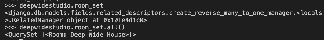 review가 room을 foreignkey로 가리키고 있다면, 그 room은 review_set을 갖게 된다.