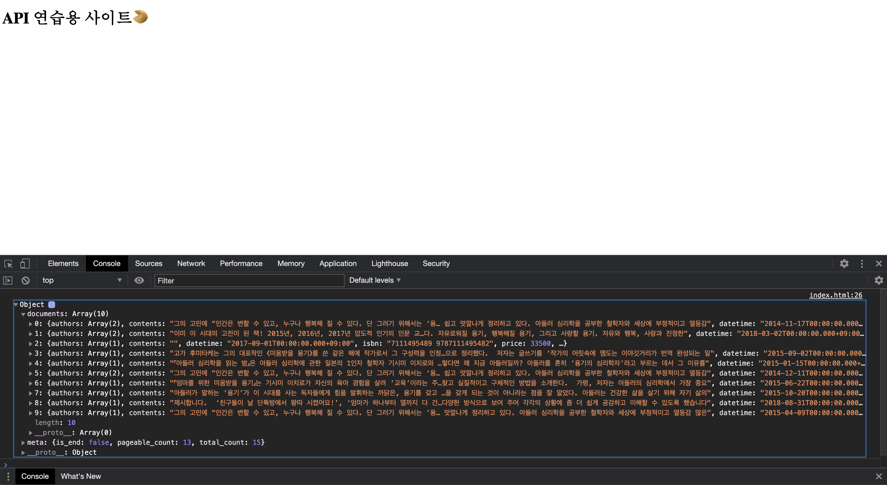 <h1> API ์ฐ์ต์ฉ ์ฌ์ดํธ๐ฅ </h1>