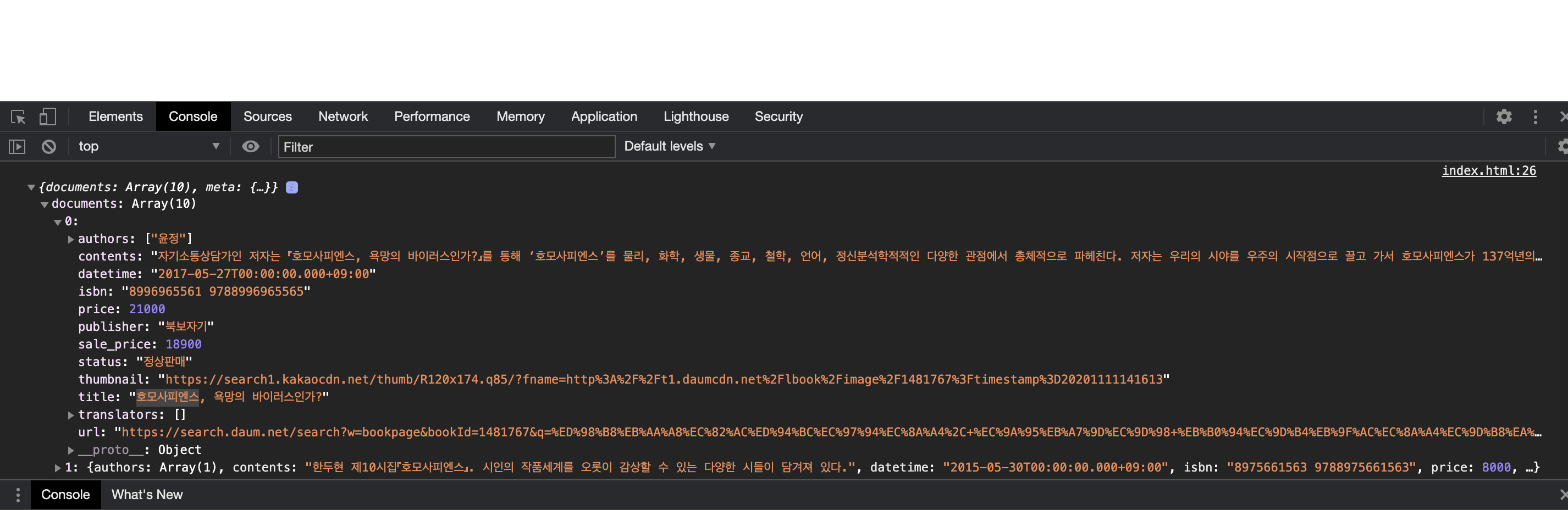 alert์ฐฝ์ด ์๋๋ผ, ์ข ๋ ์์ธํ ๋ณด๊ธฐ ์ํด console์ฐฝ์ ์ฐ์ด๋ณด๋๋กํ์.