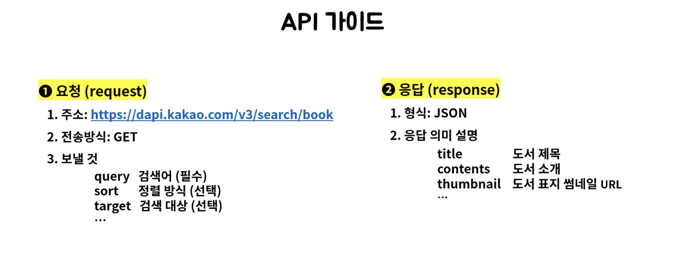 API๋ง๋ค ์ ํด์ง '์์ฒญ'๊ณผ '์๋ต'์ ํ์์ด ์๋๋ฐ, ์ด ํ์์ด ์์ฑ๋ ๋ฌธ์๋ฅผ API ๊ฐ์ด๋๋ผ๊ณ ๋ถ๋ฅธ๋ค.