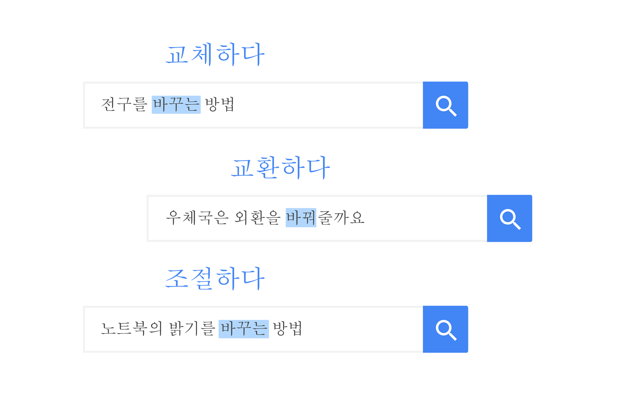 ๋ค์ ๋์๊ฐ์, ๊ตฌ๊ธ์ด ๊ฒ์์ด๋ฅผ ๋ณด๊ณ ์์ธ์์ ์ด๋ค ๋จ์ด ๊ทธ๋ฃน์ ์ฐพ์๋ด์ผ ํ๋์ง ํด์ํ๊ธฐ ์ํด ๊ตฌ์ถํ ์ธ์ด ๋ชจ๋ธ์๋ ์ฒ ์ ์ค๋ฅ ํด์๊ณผ ๊ฐ์ ๊ฐ๋จํ ๋จ๊ณ๋ ์๋ค.๋ ๋์๊ฐ ์์ฐ์ด ์ดํด๋ฅผ ์ํ ์ต๊ทผ ์ฐ์ด ๊ฒฐ๊ณผ๋ฅผ ์ ์ฉํด, ์ฌ์ฉ์๊ฐ ์ ๋ ฅํ ๊ฒ์์ด์ ์ ํ์ ์ธ์ํ ์ ์๋๋ก ํ๊ณ ์๋ค. Google์ ๋์์ด ์์คํ ์ ํตํด ์ฌ์ฉ์๊ฐ ์๋ํ๋ ๋จ์ด๋ฅผ ํ์ ํ๋ค. ๋์ผํ๊ฒ '๋ฐ๊พธ๋ค'๋ผ๋ ๋จ์ด๋ก ๊ฒ์ํ๋ค ํ๋๋ผ๋, ๋ฌธ๋งฅ์ ์ ํฉํ ๋ณด๋ค ๊ตฌ์ฒด์ ์ธ ๋จ์ด '๊ต์ฒดํ๋ค', '๊ตํํ๋ค', '์กฐ์ ํ๋ค'๋ผ๋ ๋จ์ด๋ก ํ์ ํ๋ ๊ฒ์ด๋ค. ๊ตฌ๊ธ์ ๋ชจ๋ ์ธ์ด์ ๋ํด ์ด๊ฐ์ ์ ๊ตํ ๊ณผ์ ์ ํตํด ๊ฒ์ ๊ฒฐ๊ณผ๋ฅผ ๊ฐ์ ํ๊ณ ์๋ค.