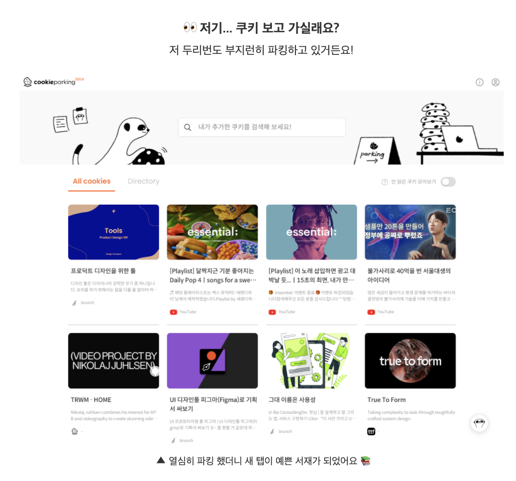 ์ฟ ํคํํน ์๋น์ค๋ฅผ ๋ฐ์นญํ์ด์! ์ฟ ํคํํน | ์ฑ์ฅํ๋ ์ฌ๋๋ค์ ๊ฐ์ฅ ๊ฐํธํ ์ฝํ ์ธ ํํน๋ ๋งค์ผ ์ ํญ์์ ํ์ธํ๋, All-in-one Web Clipping ์๋น์ค์ ๋๋ค. Cookieparking์ Chrome ํ์ฅ ์ฑ์ ํ์ฉํ๋ฉด, ๋ค