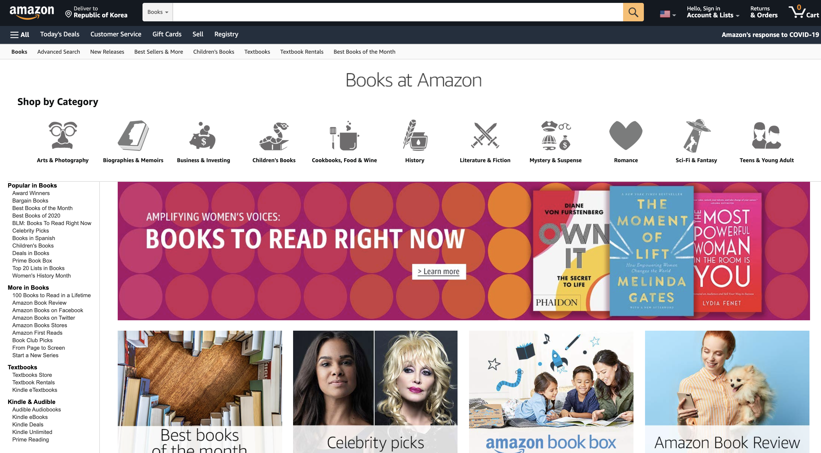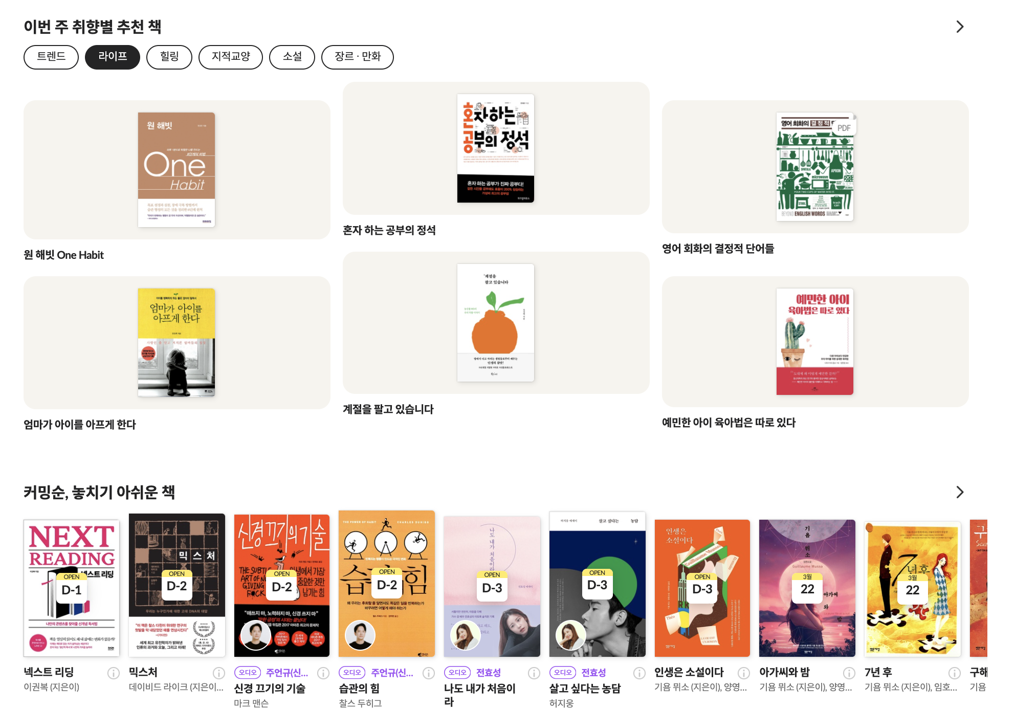 ์๋ง์กด ๋ถ์ค๊ฐ ์กฐ๊ธ์ ํฌ๋ฐํด๋ณด์ผ์ง๋ผ๋ ์ฌ์ฉ์ ์ ์ฅ์์๋ '์ง๊ด์ '์ด๋ค. 1) ์ถ์ฒ ๋์, 2) ์ต๊ทผ์ ๋ฆด๋ฆฌ์ฆ ๋ ๋์๋ค, 3) ๋ฒ ์คํธ์ ๋ฌ, 4) ๊ฐ์ฅ๋ง์ด ์ฅ๋ฐ๊ตฌ๋์ ๋ด๊ธด ์ฑ ๋ค. 5) ์ธ๊ธฐ ์๊ฐ&์๋ฆฌ์ฆ. ์ง๊ด์ ์ด๋ค. ์ต์๋จ์ผ๋ก ๋์๊ฐ์, ์๋ง์กด์ด ์ ๊ณตํ๋ ๋ถ ์นดํ ๊ณ ๋ฆฌ๋ฅผ ๋ณด์.