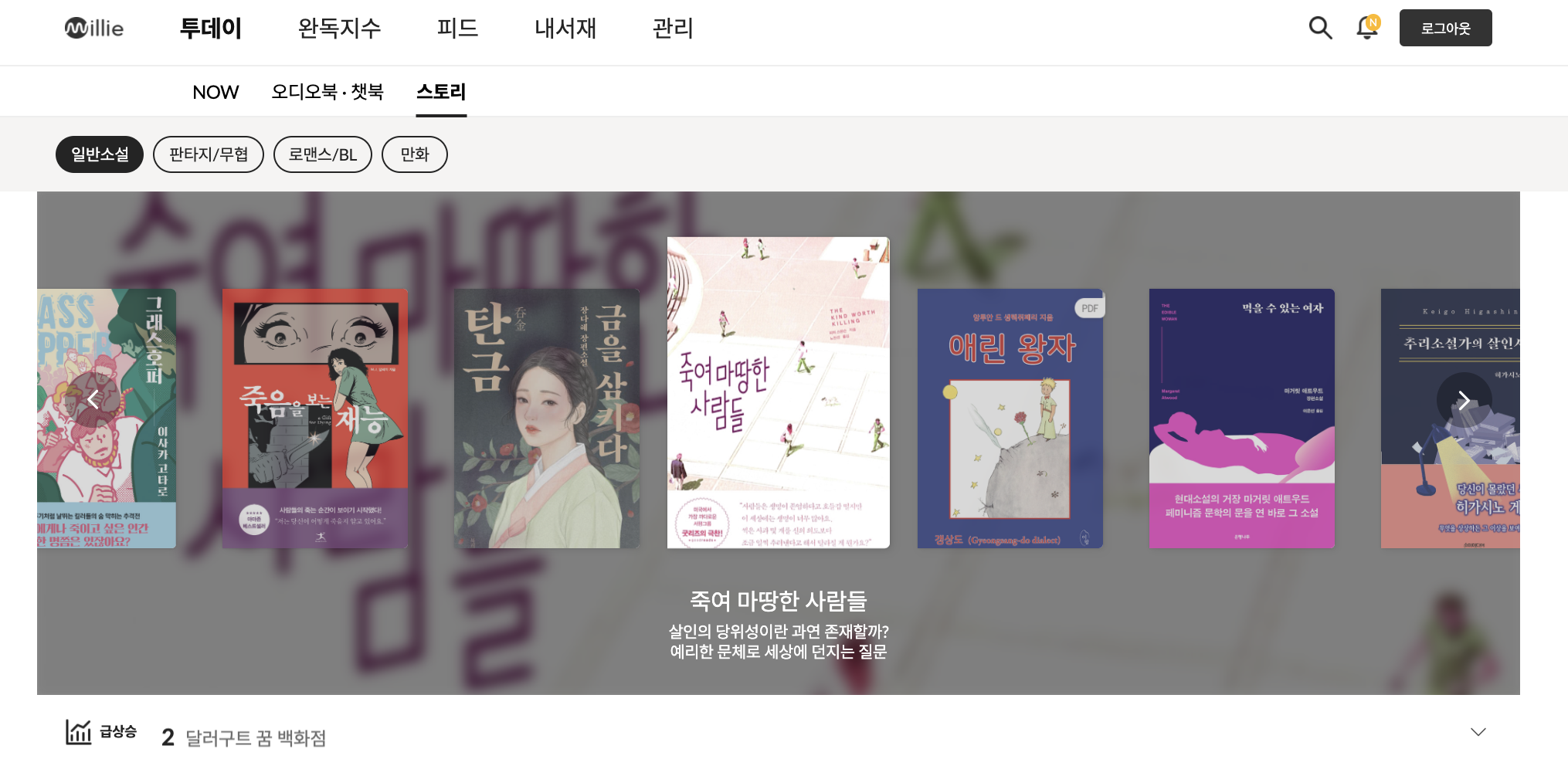 ๋ฐ๋ฆฌ์ ์์ฌ์์ ๊ฐ์ฅ ๋ถํธํ๋ ๊ฒ์ ๋ณด์ ํ ์ ์ฒด ๋์์ ๋ํ ์ ์ฒด ์นดํ ๊ณ ๋ฆฌ ๊ตฌ๋ถ์ด ์๋ค๋ ๊ฒ์ด์๋ค. ์๋ง๋ ๊ธฐ์กด ์นดํ ๊ณ ๋ฆฌ์ ์์ญ์ ๋ถ์๊ณ ์ฌํธ์งํ ์ธ ํ์ผ์ ์ํฅ์ด ์์์ ์๋ ์๊ณ , ๋ฐ๋ฆฌ์ ์์ฌ ์ฃผ์ ๊ณ ๊ฐ ๊ด์ฌ์ฌ์ ์ฃผ๋ ฅํ๊ณ ์ ํ๊ธฐ ๋๋ฌธ์ผ ์๋ ์๊ฒ ๋ค. ํน์ ๋ณด์ ๋์ ๋ชฉ๋ก์ ํ๊ณ์ผ ์๋ ์๋ค. ์๋น์ค ๋ด๋ฅผ ๋์๋ค๋๋ค๋ณด๋ฉด ๊ฐํน '์นดํ ๊ณ ๋ฆฌ'์ฒ๋ผ ๋ณด์ด๋ ๋ถ๋ถ๋ค์ด ์์ผ๋, ์ด ์ญ์ ์ ํ์ ์ด๋ค. '์ผ๋ฐ์์ค', 'ํํ์ง/๋ฌดํ', '๋ก๋งจ์ค/BL', '๋งํ'/ '์ข ํฉ', 'ํธ๋ ๋', '๋ผ์ดํ', 'ํ๋ง', '์ง์ ๊ต์', '์์ค'์ผ๋ก ๊ตฌ์ฑ๋์ด ์๋ค.