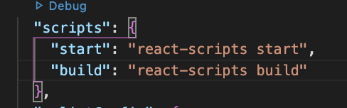 2) package.json ->scripts์์ start, build๋ง ๋จ๊ธด๋ค.