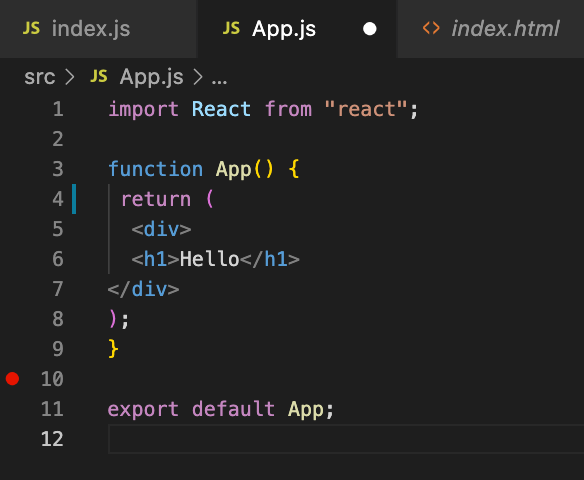 index.html, index.js, App.js