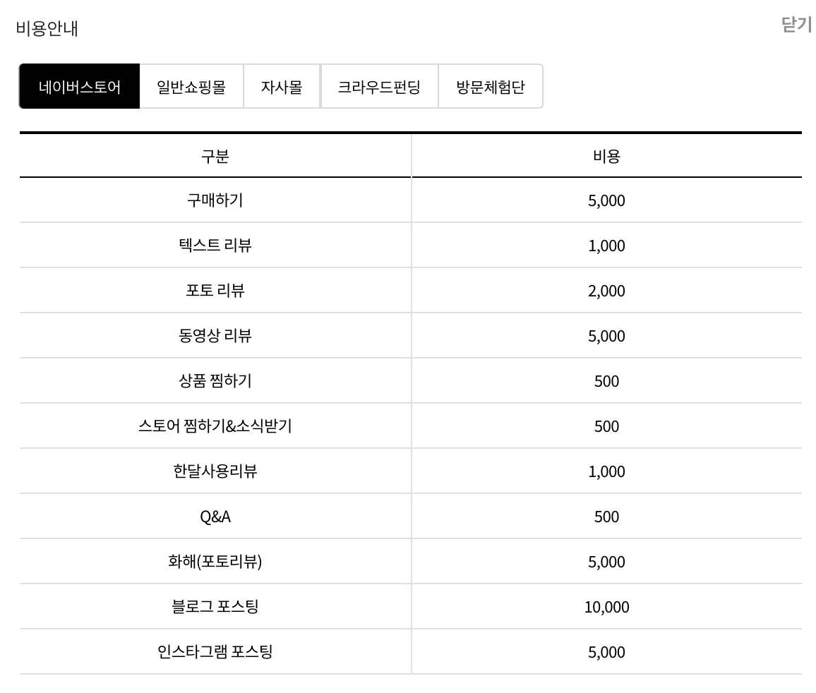 ์์ฒด ๋ฆฌ๋ทฐ ์ฒดํ๋จ ํ๋ซํผ 'ํผ๊ทธ์ต'์ ํตํด, ์ค์ ์๋น์(์ฒดํ๋จ)๋ฅผ ์ฐ๊ฒฐํด ๊ตฌ๋งค๊ฑด์, ๋ฆฌ๋ทฐ์ ๋ฑ์ ํฉ๋ฒ์ ์ผ๋ก ๋์ด๋ ๋ง์ผํ ์๋น์ค๋ฅผ ์ ๊ณตํด ๊ฑด๋น ๋น์ฉ์ ๋ฐ๋๋ค. ํญ๋ชฉ์ ๋ฐ๋ผ ๊ฑด๋น ๋น์ฉ์ด ๋ถ์ด, ์๋ขฐํ ๋ ๋น์ฉ์ ์ ์ ๊ธํ๋ค. ์ธ๋ป๋ณด๋ฉด ๋น์ธ๋ณด์ด๋๋ฐ, ๊ตฌ๋งค์ ํ์ ์ผ์ผํค๊ธฐ ์ํด ์งํํ๋ ๋ง์ผํ ๋น์ฉ์ ๊ณ ๋ คํ์ ๋ ์ด๋์ด๋ผ๊ณ ์๊ฐ๋ ์ ์๋ค. ๋ค์ด๋ฒ์คํ ์ด, ์ผ๋ฐ์ผํ๋ชฐ, ์์ฌ๋ชฐ, ํฌ๋ผ์ฐ๋ํ๋ฉ, ์คํ๋ผ์ธ๋งค์ฅ์ ๋ํด ๋ชจ๋ ๊ฐ๋ฅํ๋ค.