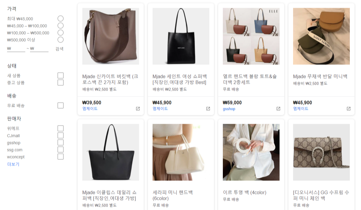 - ์ฌ์ฉ์๋ ๊ตฌ๊ธ ์ผํ์์ ํ๋งค์๊ฐ ์ ๊ธฐ์ ์ผ๋ก ์ ๋ฐ์ดํธํ๋ ํ๋งค์์ ์ ํ ์ ๋ณด๋ฅผ ํ์ธํ ์ ์๋ค. ์จ๋ผ์ธ ์๋งค์ ์ฒด๋ ์ ํ ์ ๋ณด๊ฐ ํฌํจ๋ ํผ๋๋ฅผ ๊ตฌ๊ธ ์ผํ์ ์ ์ถํ๊ณ , ์ฌ์ฉ์๊ฐ ์๋งค์ ์ฒด ์น์ฌ์ดํธ๋ฅผ ํด๋ฆญํ๊ฑฐ๋ ์ฌ์ดํธ์์ ์ง์ ๊ตฌ๋งคํ ๋๋ง๋ค ์์๋ฃ๋ฅผ ์ง๊ธํ๋ค. ์ด ์ ํ ์ ๋ณด๋ ํ๋งค์๊ฐ ์ง์ ์ ๊ณตํ๊ธฐ ๋๋ฌธ์ ํ์ฌ ๊ฐ๊ฒฉ, ์ต๊ทผ ์ฟ ํฐ, ํ์ฌ ์ ํ ์ฌ๊ณ ๋ฅผ ํ์ํ ์ ์๋ค.