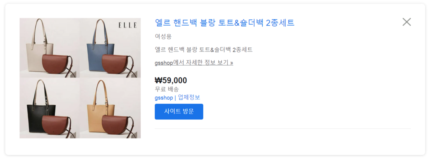 ํ๋งค์ ์ผํฐ๋ฅผ ์ด์ฉํด์ ์ ํ ๋ฐ์ดํฐ๋ฅผ ์ ์ถํ๊ณ Google Ads์์ ์บ ํ์ธ์ ๋ง๋ค์ด์ ์์ํ๋ฉด ๋๋ค. ์ ํ ๋ฐ์ดํฐ๋ฅผ ์ ์ถํ๋ฉด, Google Ads ์์คํ ์ด ๊ด๊ณ ์ฃผ์ ์บ ํ์ธ์ ๋ฐํ์ผ๋ก ์ฌ์ฉ์๊ฐ ์ ํ์ ๋ณผ ์ ์๋ ์น์ฌ์ดํธ๋ Google์ ๊ฒ์ฌํ ๊ด๊ณ ๋ฅผ ๋ง๋ค์ด ์ค๋ค. ํ ์คํธ๋ง ํ์ํ๋ ํ ์คํธ ๊ด๊ณ ์ ๋ฌ๋ฆฌ, ์ฐ๋ฆฌ๊ฐ ์์์ ์ดํด๋ณธ ํํ์ฒ๋ผ ์ ํ ์ฌ์ง๊ณผ ํจ๊ป ์ ํ๋ช , ๊ฐ๊ฒฉ, ์์ ๋ช ๋ฑ์ ์ ๋ณด๊ฐ ํจ๊ป ๋ ธ์ถ๋๋ค.
