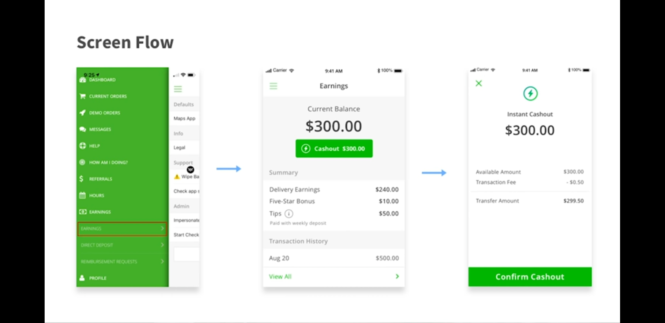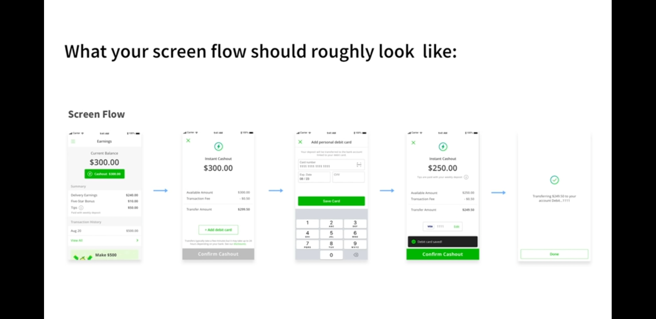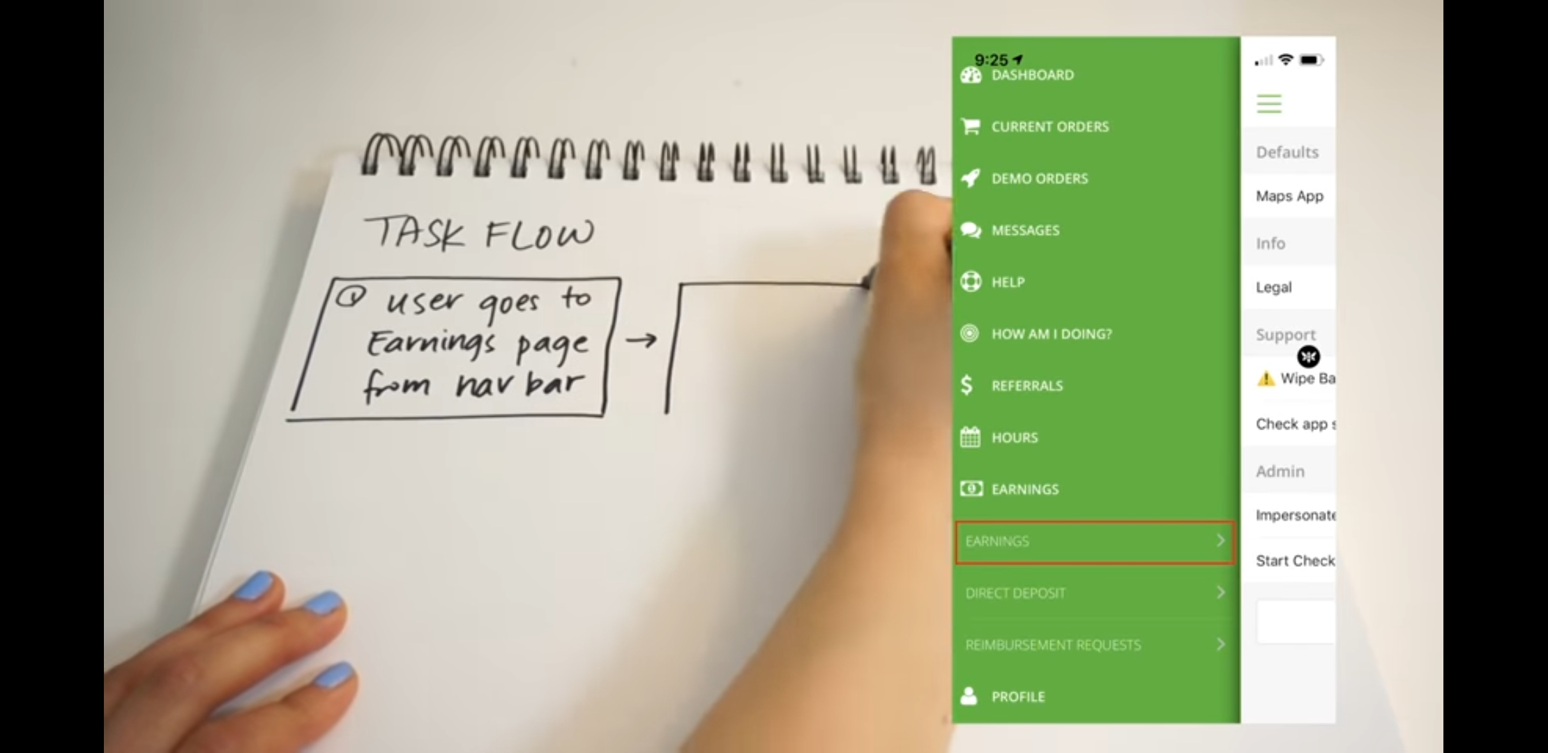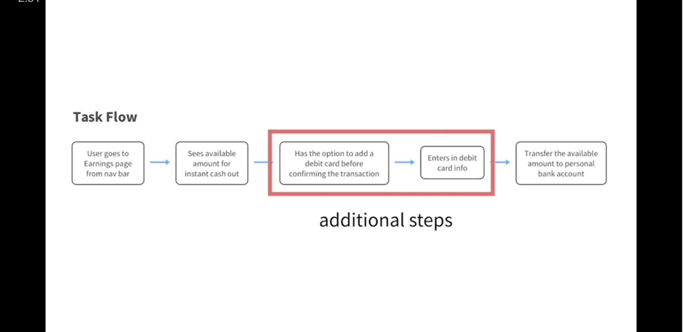 ์ ์ง๋ฌธ์ ๋ํ ๋ต์ ์์์ผ๋ก Task Flow๋ฅผ ๊ทธ๋ ค๋ณธ๋ค. ์์์์๋, Shopper๊ฐ ์ฑ ์์ ๋ค์ด๊ฒ์ด์ ๋ฐ์์ 'Earnings page'๋ฅผ ๋๋ฅด๋ ๊ฒ์์ ์์๋๋ค๊ณ ๋ณด์๋ค. ์ด๋ ๊ฒ ์ฌ์ฉ์๊ฐ ์ด๋ค ๊ณผ์ ์ ๊ฑฐ์ณ์ ๋ชฉํ๋ฅผ ๋ฌ์ฑํ๊ฒ ๋๋์ง ํผ์ง ํผ์งํ๊ฒ Task๋ค์ ์์๋๋ก ์ ์ด๋ณธ๋ค. (์ด ์์์์๋ ์ง๋ ํฌ์คํ ์ User Flow Diagram์์ ์ฌ์ฉํ๋ ์ง์ฌ๊ฐํ, ๋ค์ด์๋ชฌ๋ ๊ฐ์ ๋ชจ์์ ๊ตฌ๋ถ์ด ํ์ ์์ ๋ง์ด ์ฌ์ฉ๋์ง๋ ์๋๋ค๊ณ ํจ์คํ๋ค.)