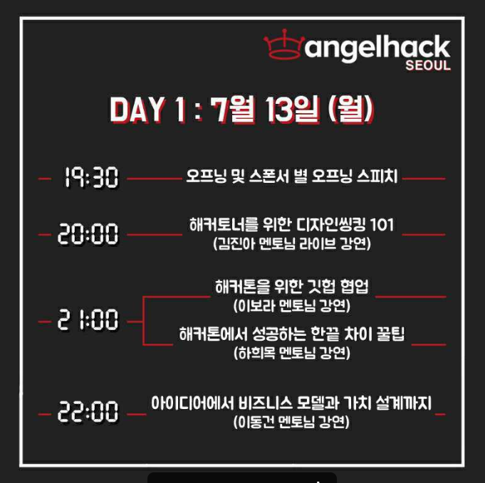 AngelHack Seoul ๊ณต์ ์ผ์ DAY - 1