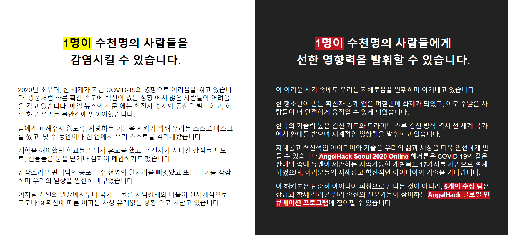 ์ด๋ฒ AngelHack Seoul 2020 Online ํด์ปคํค์์๋ ์ญ์ ํ๋๋ COVID-19๋ค. ์ ์๋ ๋์ ๊ณผ์ ๋ ๋ค์๊ณผ ๊ฐ๋ค.