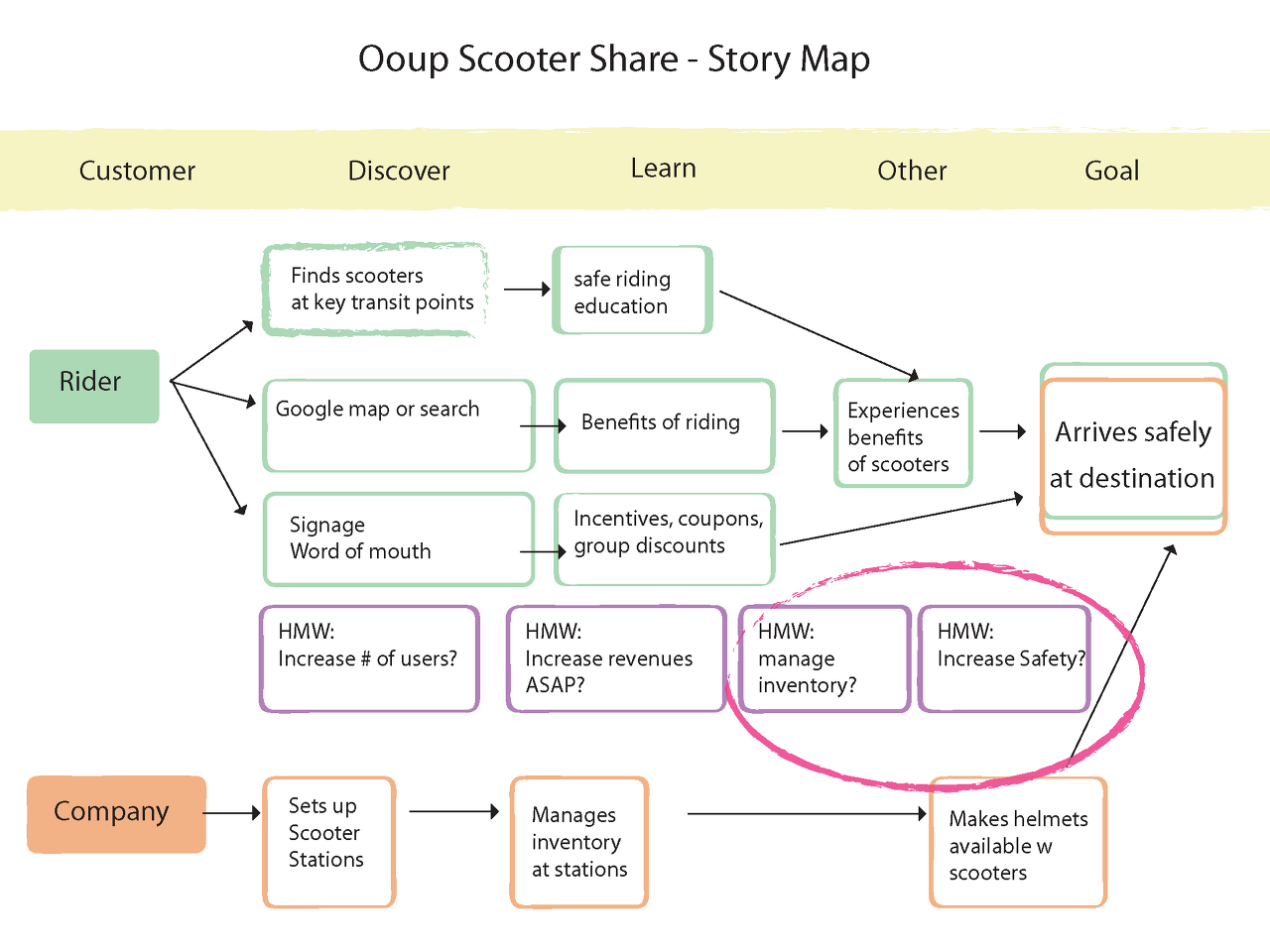 ํ์ ๊ฐ๊ฐ์ด 15๋ถ-30๋ถ ์ ๋์ ์๊ฐ์ผ๋ก ์ธ๋ถ ์ ๋ฌธ๊ฐ ์ธํฐ๋ทฐ๋ฅผ ํตํด, ์ฐ๋ฆฌ์ ์ฅ๊ธฐ๋ชฉํ/์ง๋ฌธ๋ค(๋ฌธ์ ๋ค)/map์ ๋ํด ๊ณต์ ํ๊ณ ์๋ฌธ์ ๊ตฌํ๋ค. ๊ทธํ, How Might We notes๋ฅผ ๋ง๋ค๊ณ , ์ด๋ค HMW์ ์ง์คํ ๊ฒ์ธ์ง ํฌํ๋ฅผ ์งํํ๋ค. ๊ฐ๊ฐ์ ์ฌ๋์๊ฒ๋ 2์ฅ์ ํฌํ๊ถ์ด ์๋ค. ๊ฐ์ note์ ๋๋ฒ ํฌํ๋ ํ ์ ์๋ค. Winner๋ฅผ Map์ ์์น์ํจ๋ค.