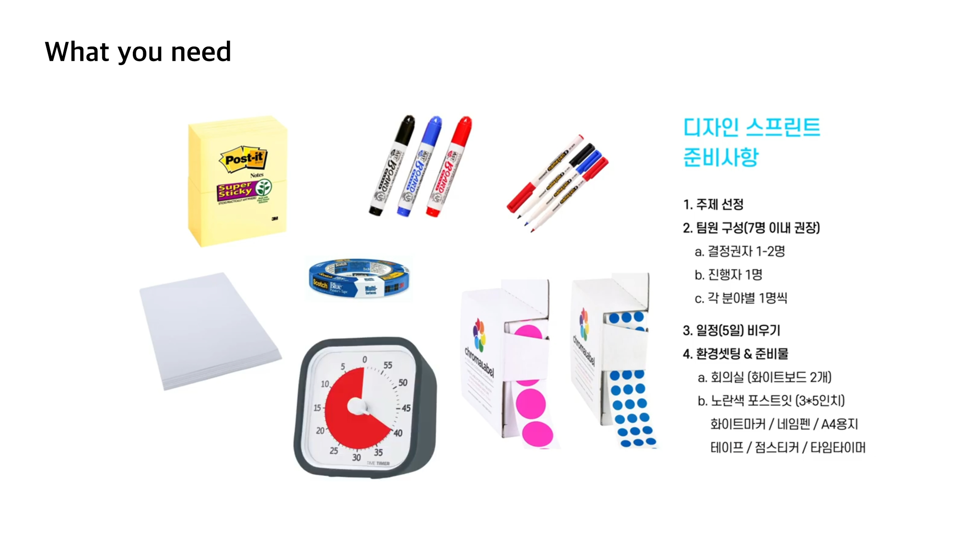 ๋์์ธ์คํ๋ฆฐํธ์ ํ๋ก์ธ์ค๋ 5์ผ๋ก ๊ตฌ์ฑ๋๋ค. ์ฐพ๋ค๋ณด๋ฉด, ๊ต์ฅํ ์ฒ ์ ํ ๊ณํ ํ์ ์ค์ผ์ค๋ง ๋์ด์๋ค๋ ๊ฒ์ ์ ์ ์๋ค. ์ผ๋จ, ์ค๋น๋ฌผ์ ๋ค์๊ณผ ๊ฐ๋ค.